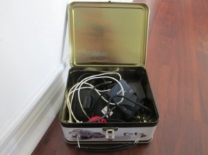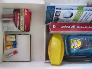 This is the one where I had miscellaneous batteries, battery chargers and cables, along with paper and plastic items – probably not a good idea!