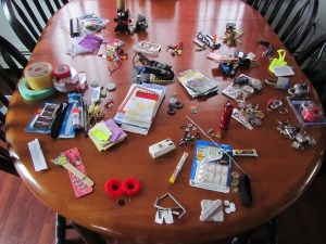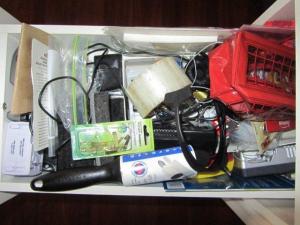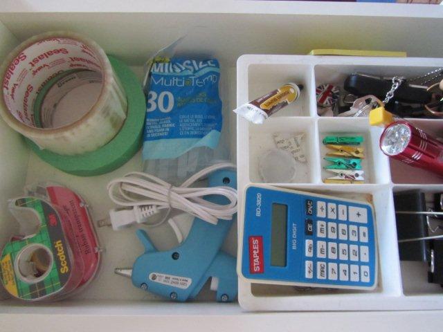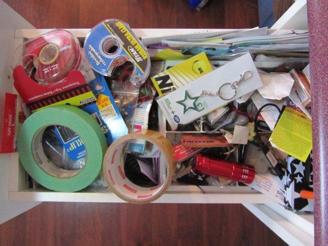 I have a desk in my kitchen with THREE junk drawers. Most of the stuff I throw in them has a real home somewhere else in the house or shed, but the junk is being shoved out of sight for a while. Since my last clear-out, the drawers have stayed mostly uncluttered, because I have made myself put things away where they belong in the tool box, the office, etc.  I am trying to keep a small stash of supplies on hand that I use all the time, or that don’t belong anywhere else.