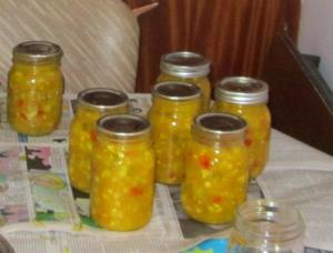 This month I made whole wheat bread and yogurt as usual, and a blackberry upside-down cake with wild blackberries that my brother and sister-in-law picked for me! The highlight of the month, though, was that I learned how to make mustard pickles with my mom. (This would be piccalilli in the UK). We always had pickles in the house, but I had never done any pickling before, and didn’t know the steps. I am really glad I got to observe her doing it because I never would have figured it out from her recipe and notes. In a surprise twist, Mom decided to peel the cucumbers and chop everything up tiny, which she had never done before! Furthermore, she is fed up with peeling tiny silverskin onions, so just used regular chopped onions. In a week or two I will be going back to learn how to make green tomato “chowl” (chow-chow).