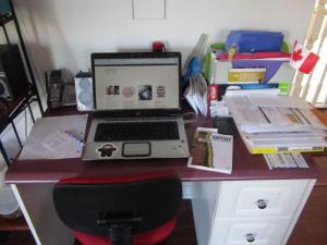 The notes next to the laptop on the left are work phone calls I need to catch up on at home 😦 and a few blog notes.