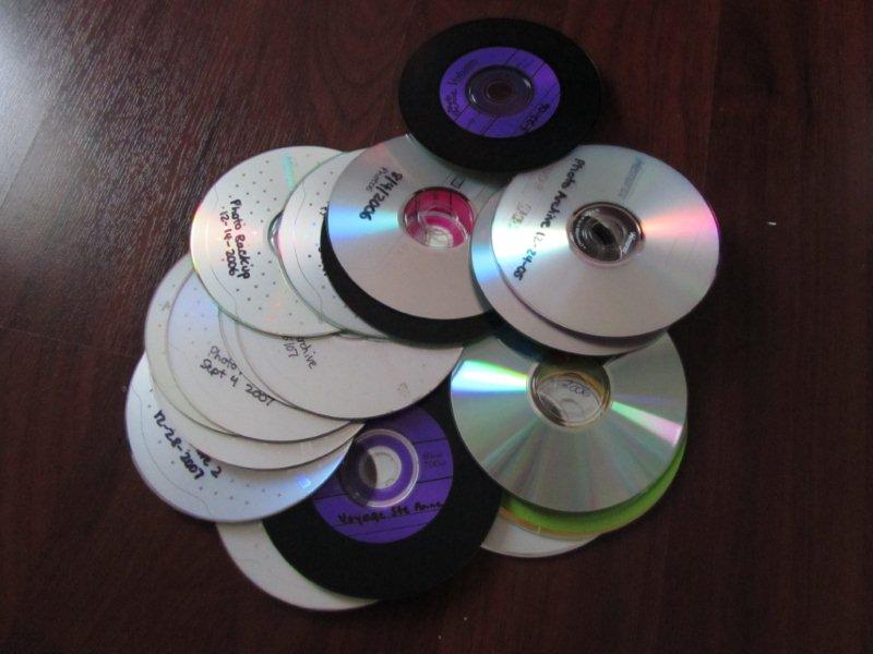 The largest pile I had was burned CDs. Almost all of them were back-ups of music, photos, personal finance data, and documents. Before having access to huge hard drives, I backed up files onto multi-disk sets regularly. I divided them into 2 piles – with and without personal content.