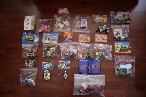 Itty bitty LEGO kits, mostly one figure with a vehicle, etc.