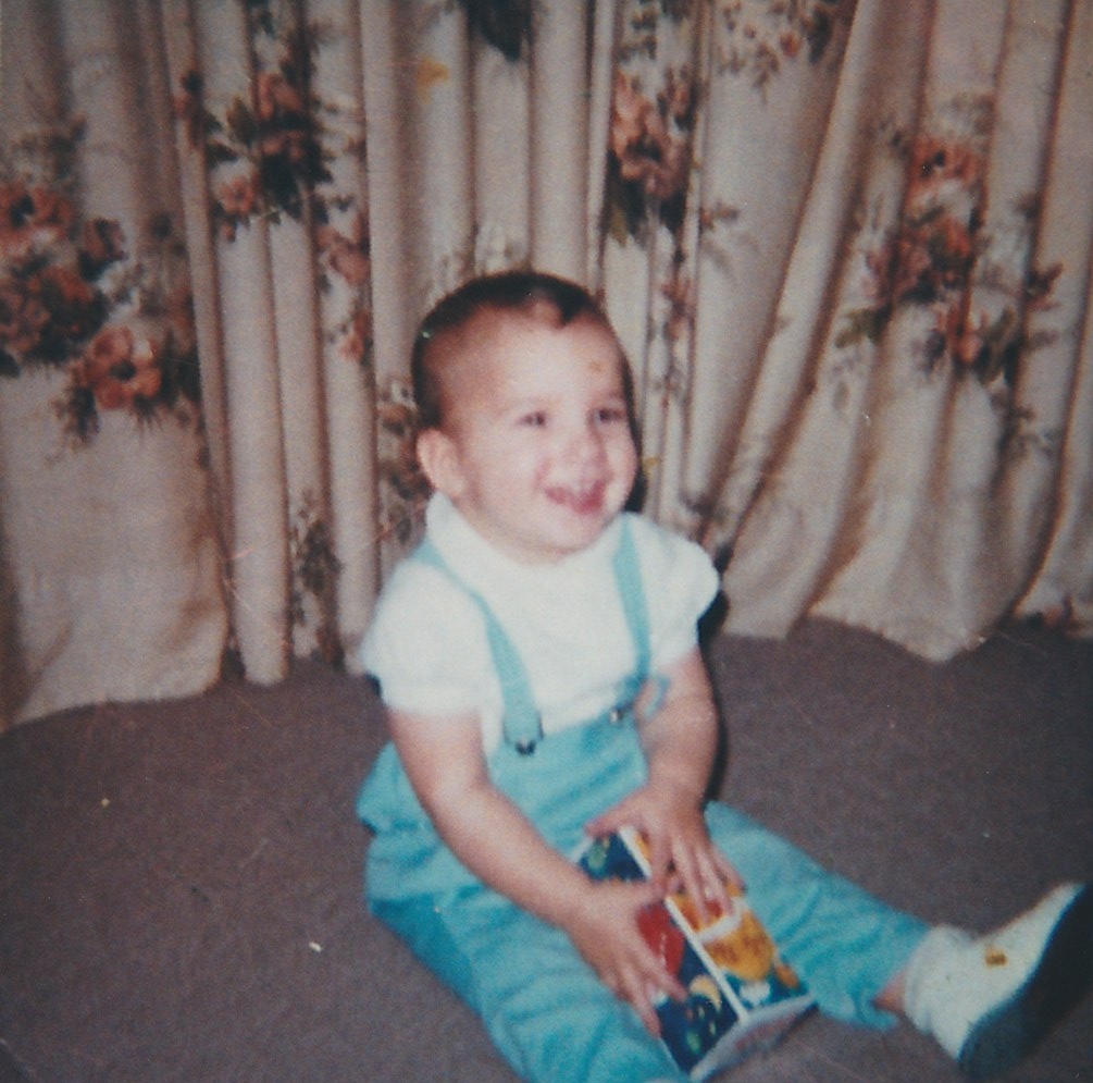 Cousins: note our matching lack of hair. That’s me on the left!
