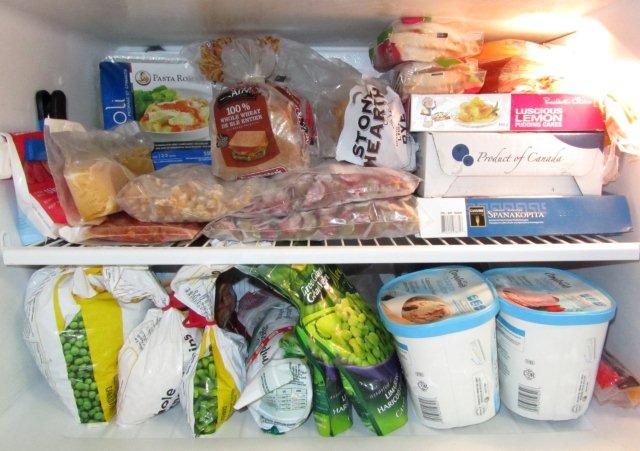 Everything in the fridge and freezer right now is typical except the frozen lemon cakes and spanakopita which were purchased as treats and won’t be replaced until the next treat comes along…maybe spring rolls! We switch up frozen yogurt, ice cream and ice cream bars (such as ice cream sandwiches or Fudge Sicles).