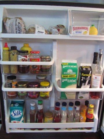 Additions in my fridge are mostly baking items: whole wheat flour, yeast, oat bran, wheat germ, flax seed, pecan pieces, almonds, raisins, etc. These items are supposed to keep better in the fridge, but I know a lot of people may keep them in the pantry.
