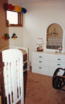 Baby Link actually got a fully decorated room, in primary colours. I loved it. I didn’t know the gender of my baby (still don’t, LOL!) and I got some flack for not changing it over to pink when Link was born. I claim victory on that one!