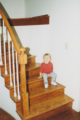 House 3 was a large colonial style. I didn’t have enough furniture to fill it, and left a couple of rooms empty. It was a very attractive house, which demanded decorating. But I always felt like I was clattering around in that big house. So that Link and I weren’t isolated from each other, we ate in the eat-in kitchen and turned the adjoining, seldom-used dining room into a work space/office. Half of the nearby living room became a play space. There were so many bathrooms that Link had their own, and I bought some kid-friendly pieces for it, like a “fish themed” shower curtain. I had an A-Ha moment in that house. It had a lovely curved wooden staircase. Halfway up was a nook that was crying out for a sculpture about three feet tall. Maybe a vase with curly twigs in it? I shook my head and decided that no, I was not going to spend money on a decorative object that was bought only to fill the space. Instead Link got a trike and a sandbox. Score!