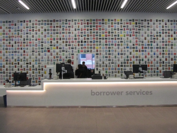 People I know have two questions for me. They want to know if the library system will keep all its local branches and the answer is yes. Not everyone likes or is able to travel downtown, and I will be keeping my job in the suburbs! They also want to know, given all the new technology including self-check machines and automatic sorters, if staff will lose their jobs. Resoundingly no: the library has added over 60 new jobs at Central, and is freeing up staff from repetitive tasks so they can be out in the library assisting customers all the time: whether it is teaching teens how to use the media studio or running through the workings of the theatre space, or all the things we did before, like setting up your iPad with Overdrive so you can borrow free e-books, or suggesting what you should read next when you’re up-to-date on your Sue Grafton mysteries. Oh, and 27 new staff were hired for the cafés!