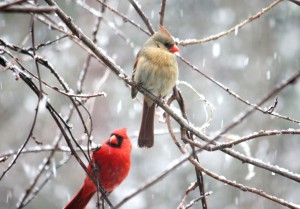 I have been cheering myself up by learning to recognize bird song – the pair of cardinals is still around. I am trying to entice them closer to the house with premium birdseed, but with two watchful (indoor) cats, it’s not realistic to expect to see them at my window! I am happy to settle for the chickadees and sparrows.