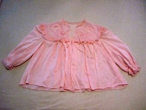 I love the bed jacket! The idea of something being for such a specific purpose. Of course people used to spend longer recuperating in bed. When my mother had me she spent two weeks in hospital and wasn’t allowed out of bed for ages. Now they get you up straight away.