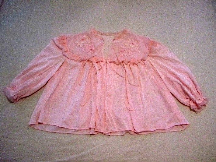 This is a “bed jacket” which was worn over a nightgown when sitting up in bed, especially when receiving visitors at the hospital