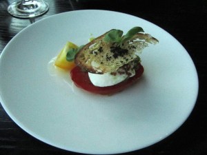 Tomato and Burrato Salad. I regret you can’t see the gorgeous true colours of the sweet red and yellow tomatoes.