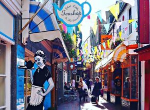 The Lanes are narrow, winding pedestrian shopping alleys, packed with cafes, restaurants, sweet shops, jewellery shops, stationers and all sorts of independent stores. It is hard to get photos to capture the feel, but I found this one: