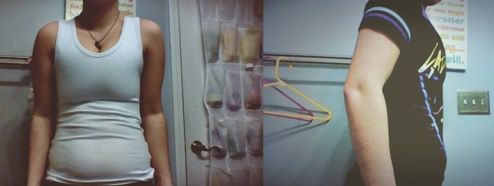 A binder (compression shirt) and how it looks with clothes over (not Link)