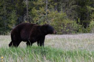 Our biggest land animals are moose, white-tailed deer and black bears. I have only seen moose in wildlife parks, fortunately, because they often collide with cars and cause fatalities. They have funny faces, a bit like camels! We only have one kind of deer, plentiful and beloved of hunters. And only one kind of bear, sometimes drawn to camp sites and garbage heaps for food, and always best avoided. I found a side-on picture of a bear to show that its face has a similar shape to a badger’s (we don’t have American badgers in this area).