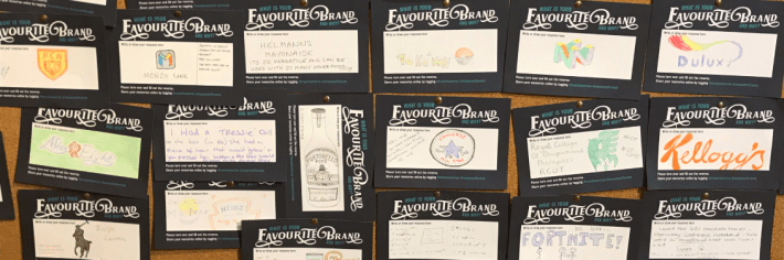 At the end of the main exhibit, visitors were asked, “What is your favourite brand and why?” You were invited to write or draw on a card and post it on a display wall. I was very impressed that so many visitors were able to draw the logos of their favourite products. Did they look them up on their phones or are they really so familiar? Although I do know toddlers recognize logos like McDonalds before age 2!