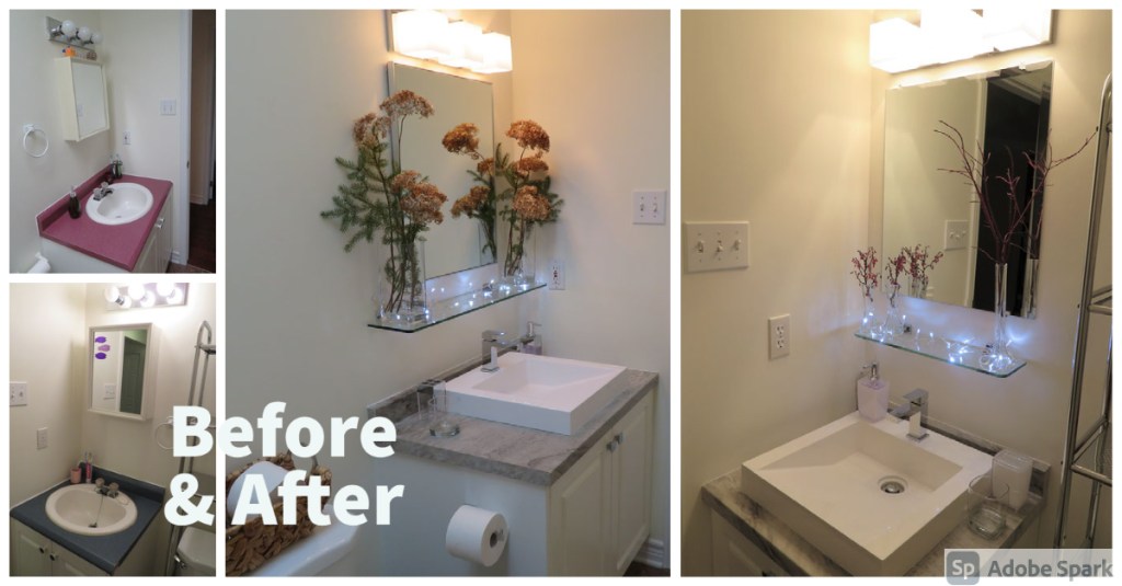 I planned and shopped for a small bathroom renovation this year. Both bathroom sinks and both faucets, as well as the lighting fixtures, were badly corroded. They were all original to the house, age 25. Β After considering all options, I decided to replace the countertops. I thought about replacing the vanities entirely, but they aren’t stock sizes, so that would have called for replacing flooring and repainting. I made a point of buying everything locally, and my brother did the installation. Nice limited-scope project.
